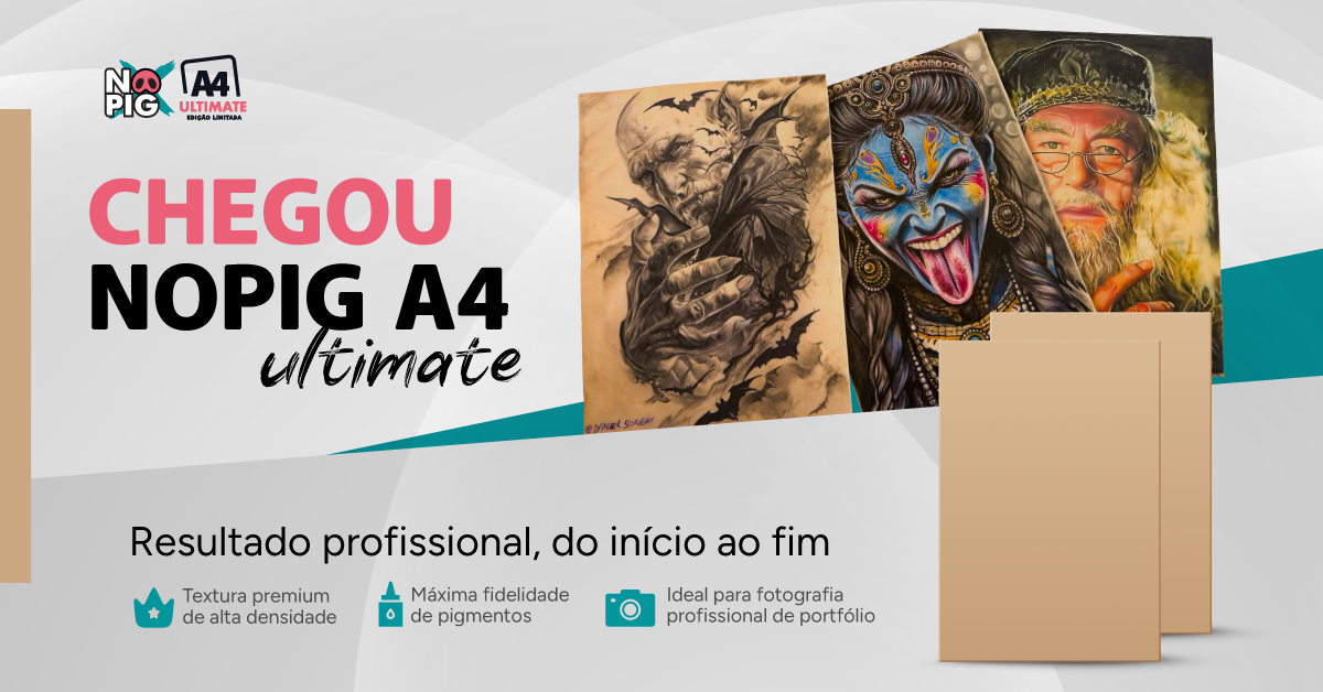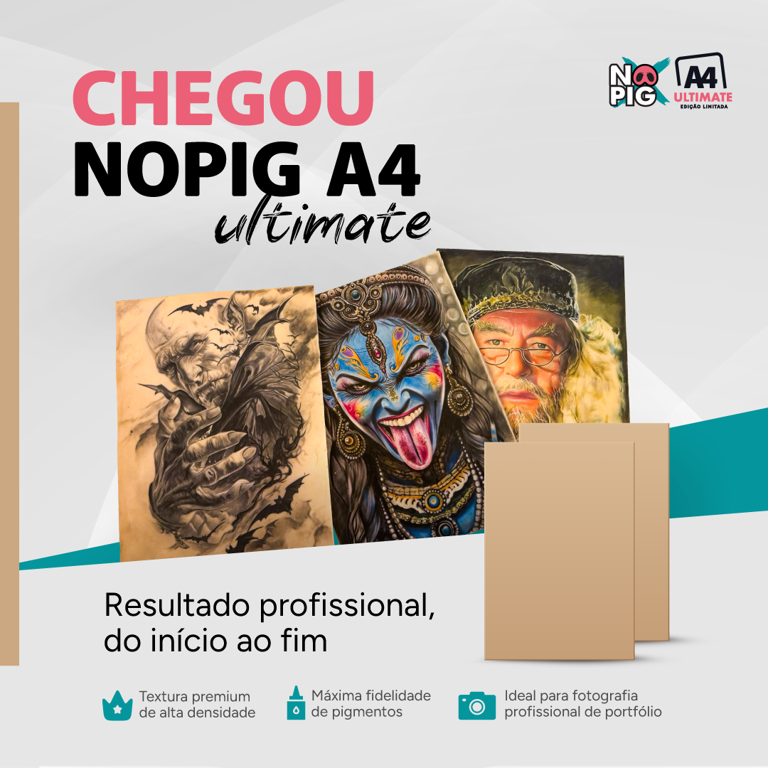 "Sou tatuador há mais de 16 anos, e há mais de 10 anos eu venho ministrando cursos e workshops. E em vários desses cursos a gente vem utilizando as peles da NOPIG pra fazer o desenvolvimento dos nossos alunos. Usamos tanto nas técnicas de colorido, quanto nas de sombreamento também, fazendo as passagens de tons, aplicações e valores tonais. E é bacana que a gente pode utilizar tanto na frente quanto no verso, então com uma pele dessa aqui a gente consegue praticar bastante, utilizar a pele de diversas formas, pra ter um desenvolvimento bacana do seu trabalho. Quem tiver interesse em crescer e evoluir sua técnica, fica aí a dica, a pele da NOPIG."